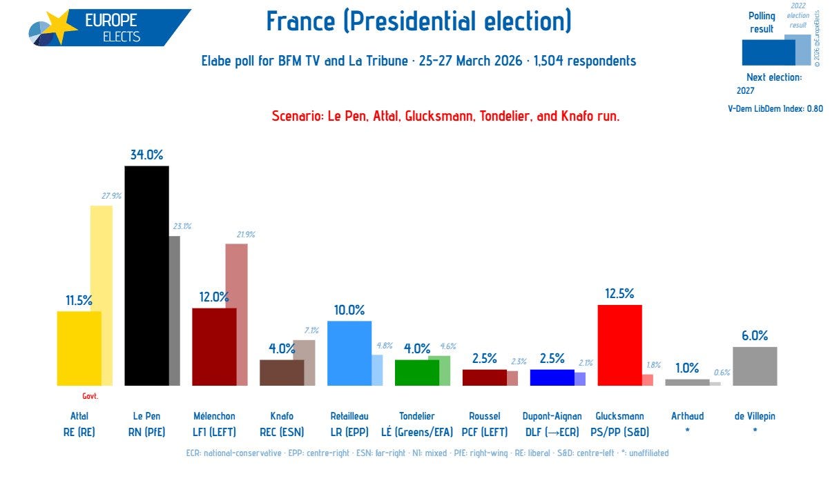 So, let’s get the week started with a quick look at what may be the first serious poll of the 2027 presidential elections, which will yet again become a full feature here on The French Dispatch as we head into another election.