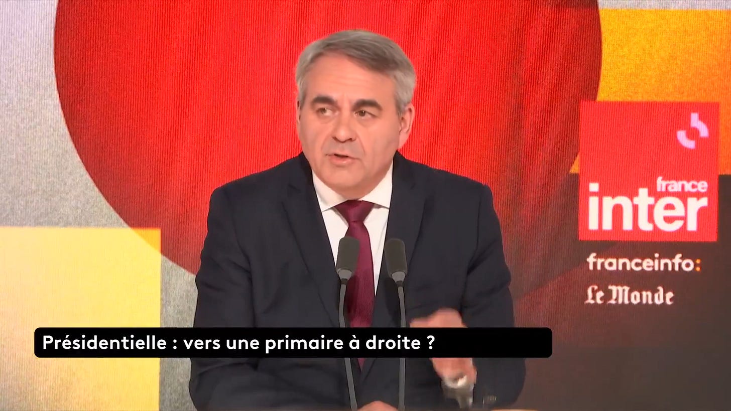 Many of you will remember that Xavier Bertrand was also one of the loudest voices against Eric Ciotti’s gambit to create a Union of the Right, which led to Ciotti being ejected from the party twice, and Bertrand’s reaction was no different here: