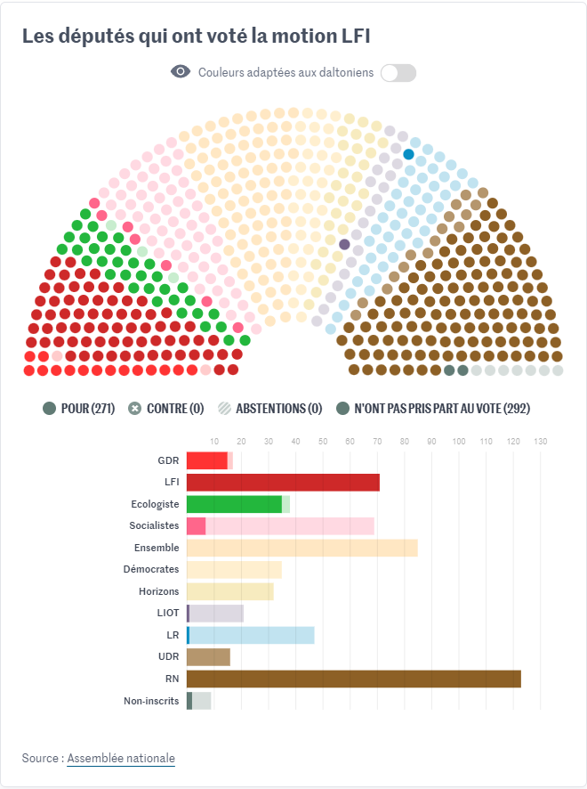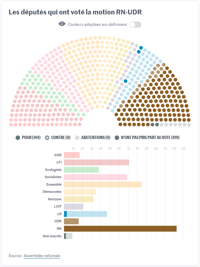 To begin with, let’s look at the Rassemblement National - Union des Droites pour la République censure motion:
