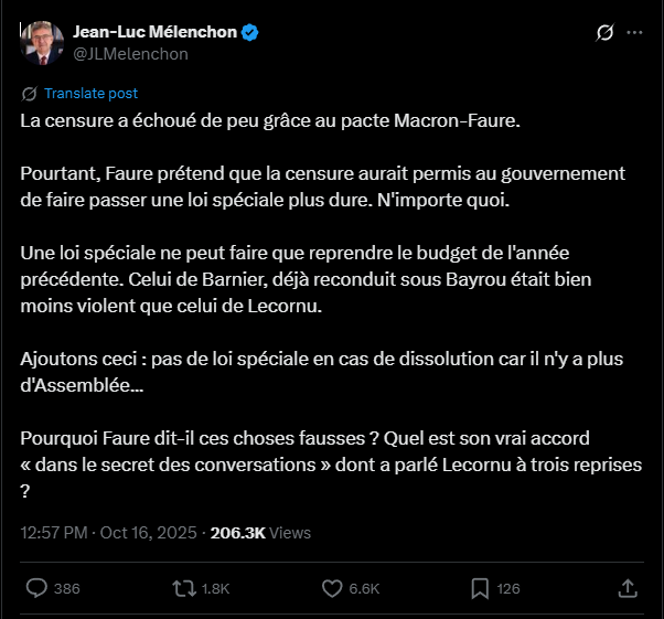 “Censorship narrowly failed thanks to the Macron-Faure pact.